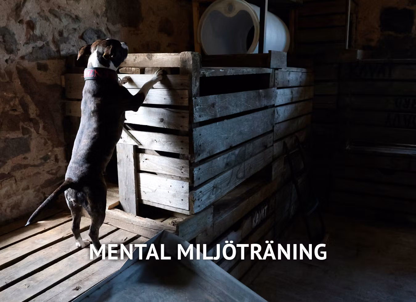 Mental miljöträning handlar om att låta hunden ta kontroll över sin egen utveckling i en trygg och säker miljö. Hundarna arbetar en och en tillsammans med instruktören, allt för att ge den optimala förutsättningar att växa mentalt.